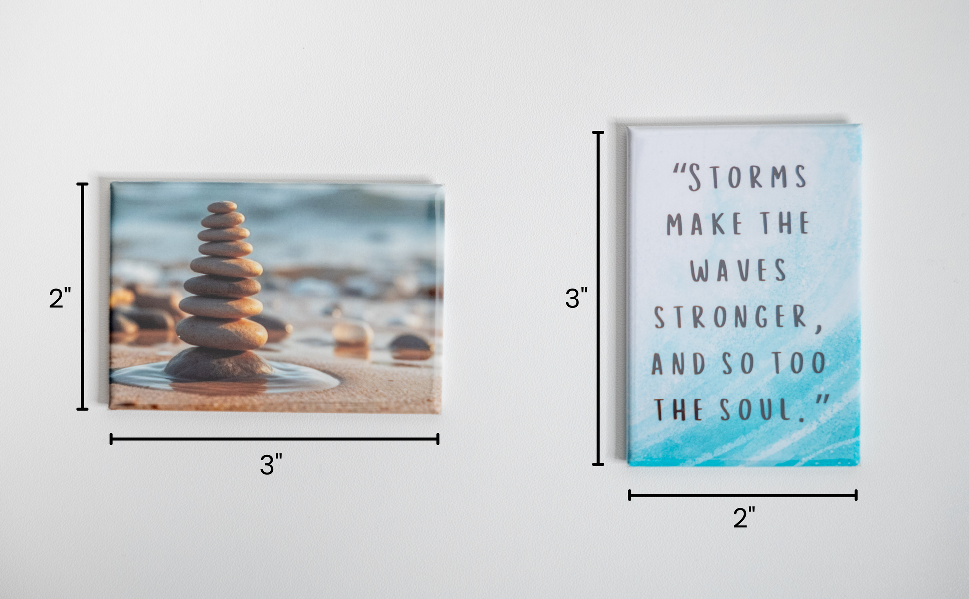 Our 2x3" custom photo magnets turn your favorite moments into lasting keepsakes! Each piece is carefully assembled by hand, using high quality photo paper and 5-layer metal pieces designed to last, with a strong magnetic backing. Every magnet features a protective coating over the design to keep it looking sharp and vibrant for the long haul. A meaningful, personal touch for any fridge or workspace!